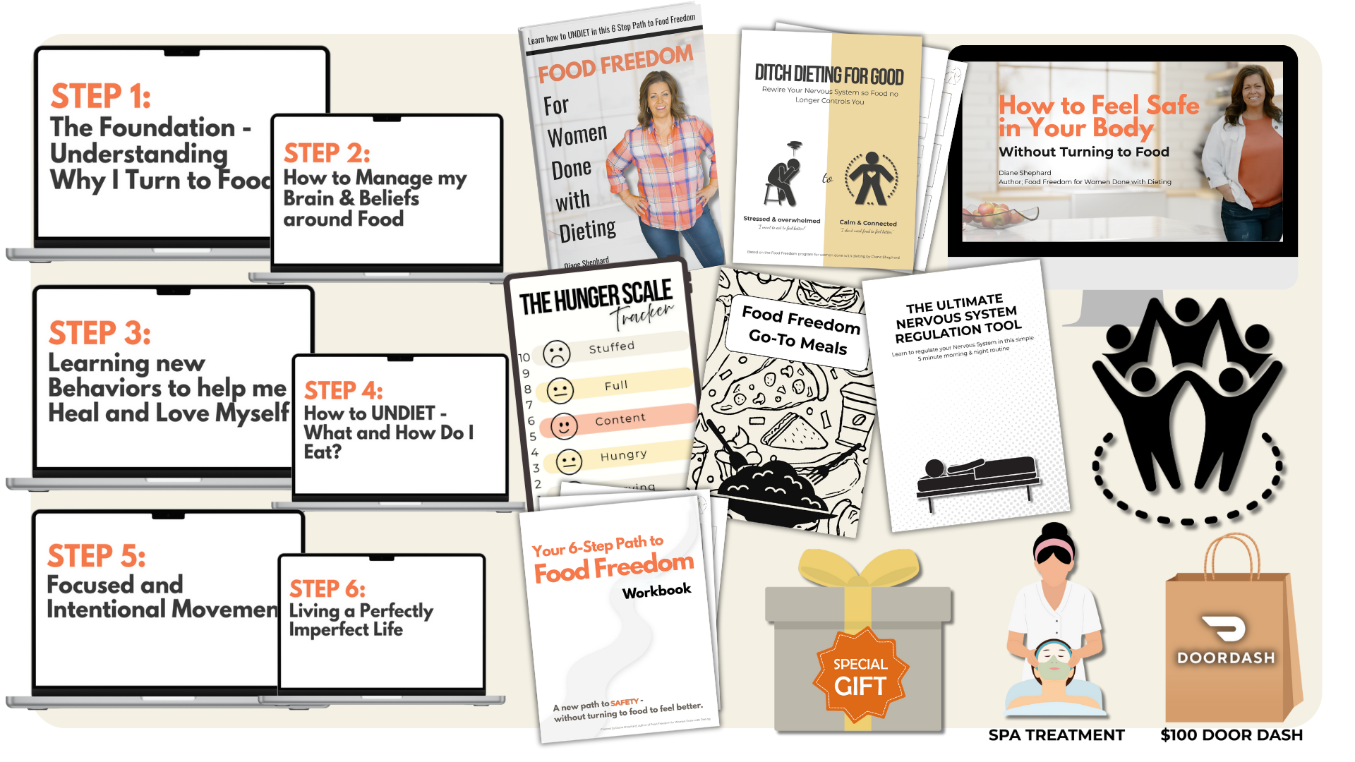 This isn’t a weight loss program—but many women do lose weight as a natural result of healing their relationship with food and calming their nervous system. We focus on food freedom, not food rules.
